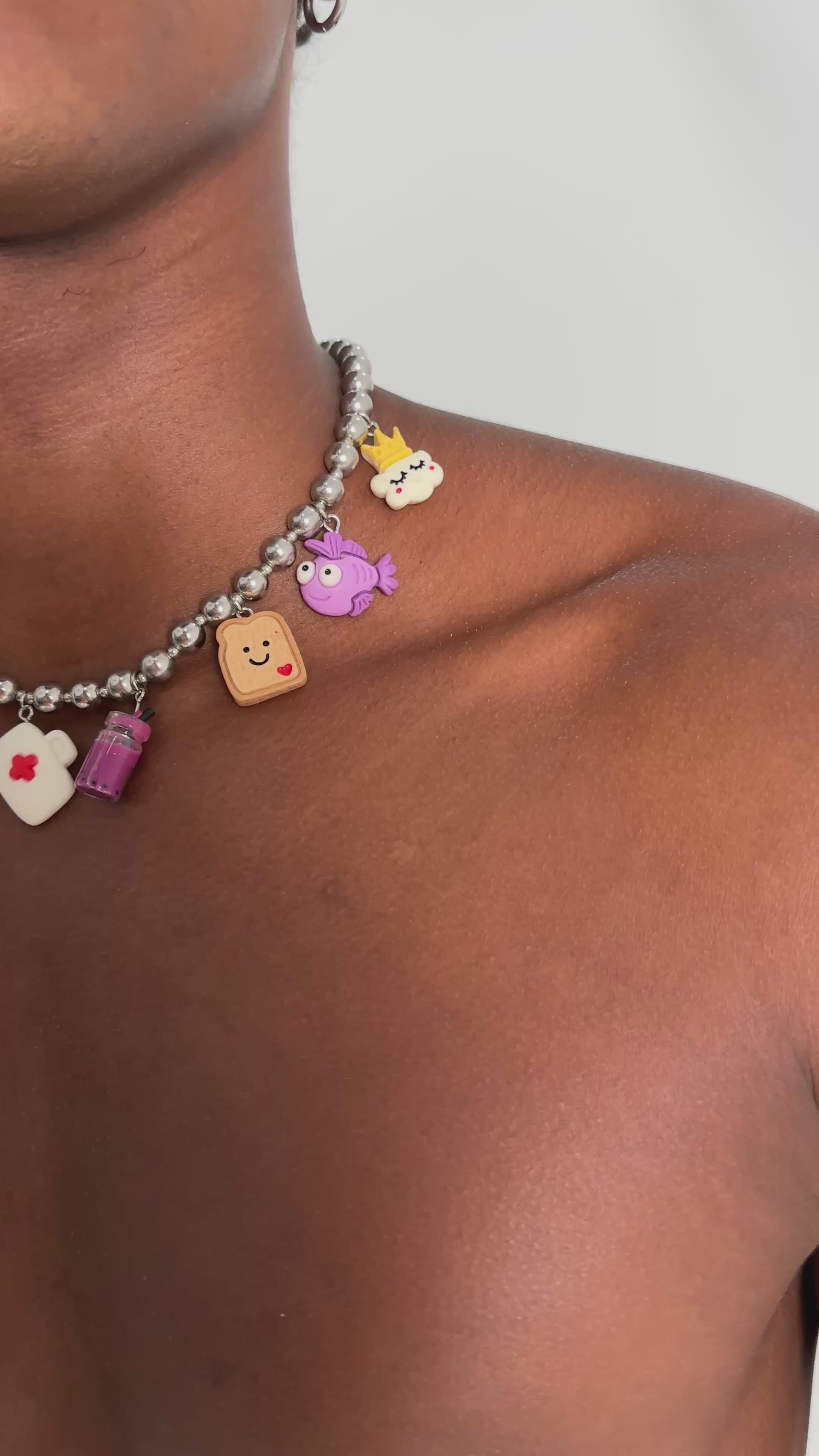 * Tipo de colar: colar de pérolas com pingentes temáticos (drinks e comidinhas)