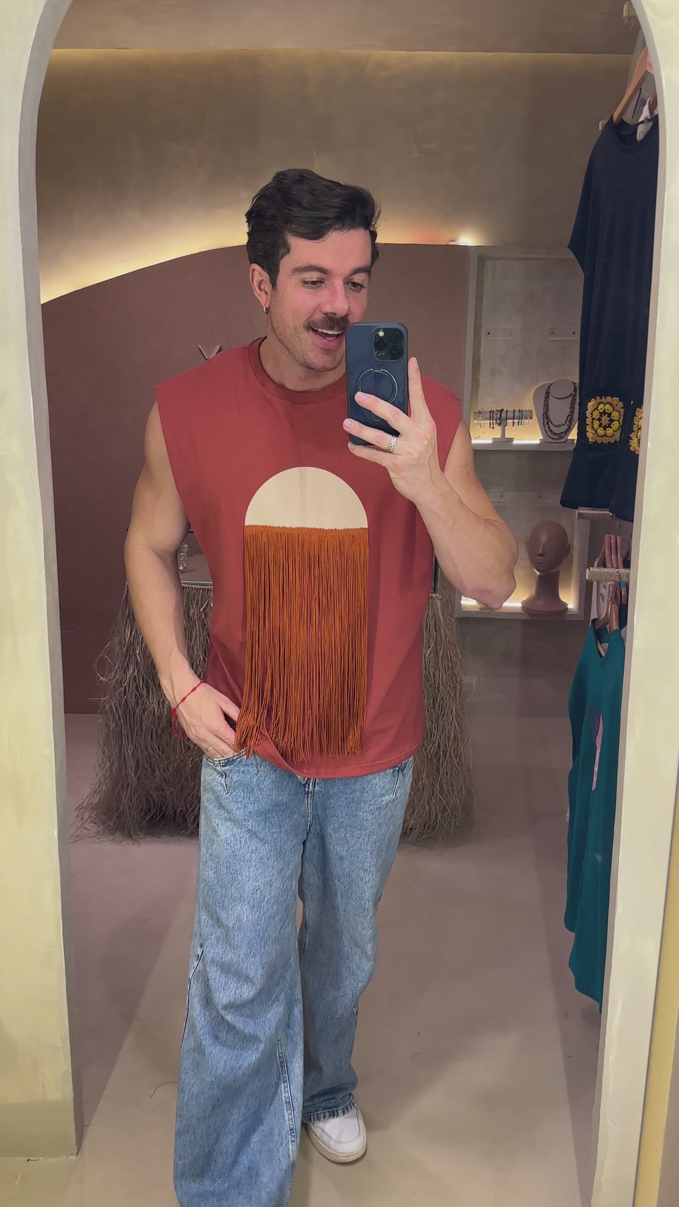 A Regata Franjas Terracota une conforto, estilo e movimento em uma peça única, perfeita para quem busca um look despojado e moderno. Sua modelagem ampla e solta proporciona liberdade de movimento, enquanto as franjas aplicadas na meia-lua adicionam dinamismo e charme ao visual.